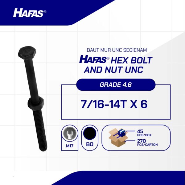 (BAUT MUR UNC SEGIENAM 4.6 DIN 931 HITAM 7/16 X 6 14TPI )
