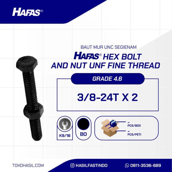 (BAUT MUR UNC SEGIENAM DRAT HALUS 4.6 DIN 933 HITAM 3/8 X 2 24TPI )