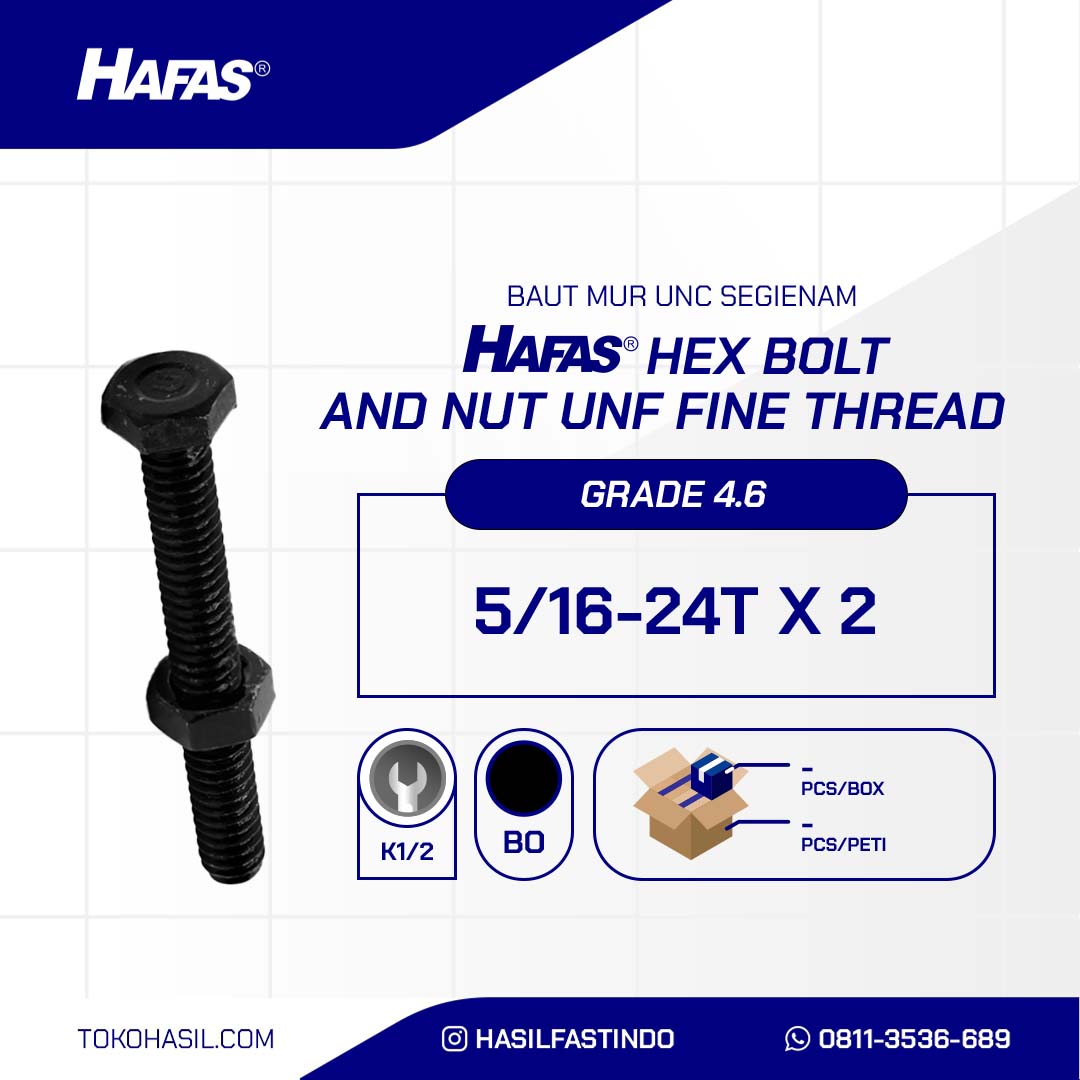 (BAUT MUR UNC SEGIENAM DRAT HALUS 4.6 DIN 933 HITAM 5/16 X 2 24TPI )