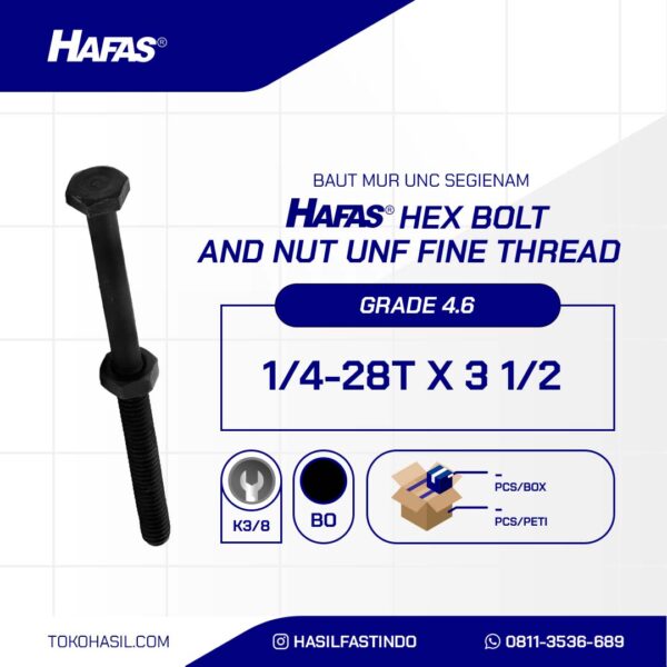 (BAUT MUR UNC SEGIENAM DRAT HALUS 4.6 DIN 931 HITAM 1/4 X 3 1/2 28TPI )