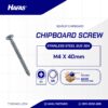 CHIPBOARD SCREW STAINLESS STEEL SUS 304n(CHIPBOARD SCREW STAINLESS SUS 304 M4 X 40mm)nMaterial: Stainless Steel 304nDiameter: M04nLength: 40mmnCoating: RawnScrewdriver: k2