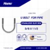 U BOLT FOR PIPEn(STAINLESS STEEL PIPE CLAMP SUS 304 3/8 X 1 1/2)nMaterial: Stainless Steel 304nDiameter: 3/8 inchnLength: 1 1/2 inchnCoating: RawnKey: k9/16