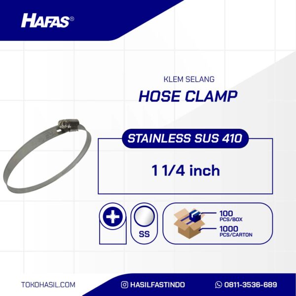 HOSE CLAMPn(STAINLESS HOSE CLAMP SUS 304 1 1/4 inch)nDiameter: 1 1/4 inchnMaterial: Stainless Steel 304nCoating: Stainless Steel