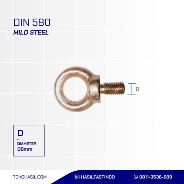 LIFTING EYE BOLT UCP YELLOW M06 P1.00nDiameter: M06nMaterial: IronnCoating: UCP YELLOWnStandard: DIN 580nPitch: P1.00nWeight: 51.5 grams