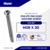 PHILIPS PAN HEAD MACHINE SCREW (JP) SUS 304 M 08 X 30 P1.25n(MACHINE SCREW JP SCREWDRIVER+ SUS 304 M 08 X 30 P1.25)nnDiameter: M 08nLength: 30mmnMaterial: Stainless SteelnCoating: Stainless SteelnScrewdriver: 4nStandard: DIN 7985 / ISO 7045nHead Shape: Pan HeadnPitch: P1.25