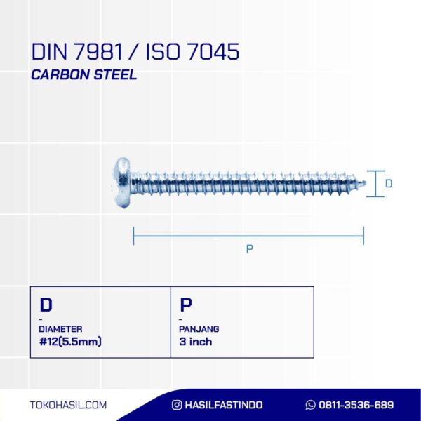 Yes, process the order No, back to product detailsPHILIPS PAN HEAD TAPPING SCREW ZINC PLATED #12 X 3 n(TAPPING SCREW PH+ WHITE #12 X 3 )nnDiameter: #12nLength: 3 inchnMaterial: SteelnCoating: White Zinc PlatednScrewdriver: 3nStandard: DIN 7981nHead Shape: Pan Head
