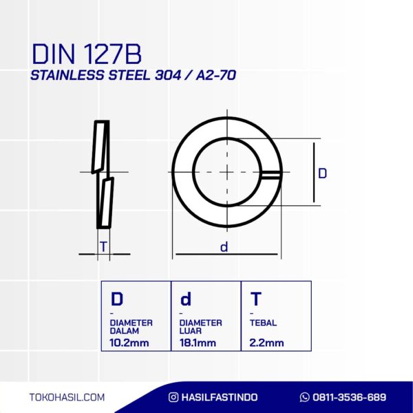 Yes, process the order No, back to product detailsSPRING LOCK WASHER SUS 304 M10n(RING PIR SUS 304 M10)nnInner Diameter: 10.2mmnOuter Diameter: 18.1mmnThickness: 2.2mmnMaterial: Stainless Steel 304nStandard: DIN 127BnWeight: 2.59 grams