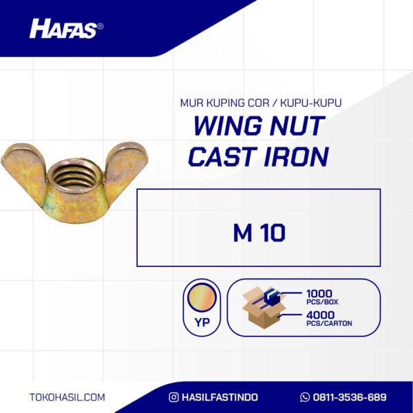 (WING NUT CAST IRON)nnEAR NUT / BUTTERFLY NUT CAST UCP YELLOW M 10 P1.50nMATERIAL:IRONnDIAMETER:M10nCOATING:YELLOW UCP