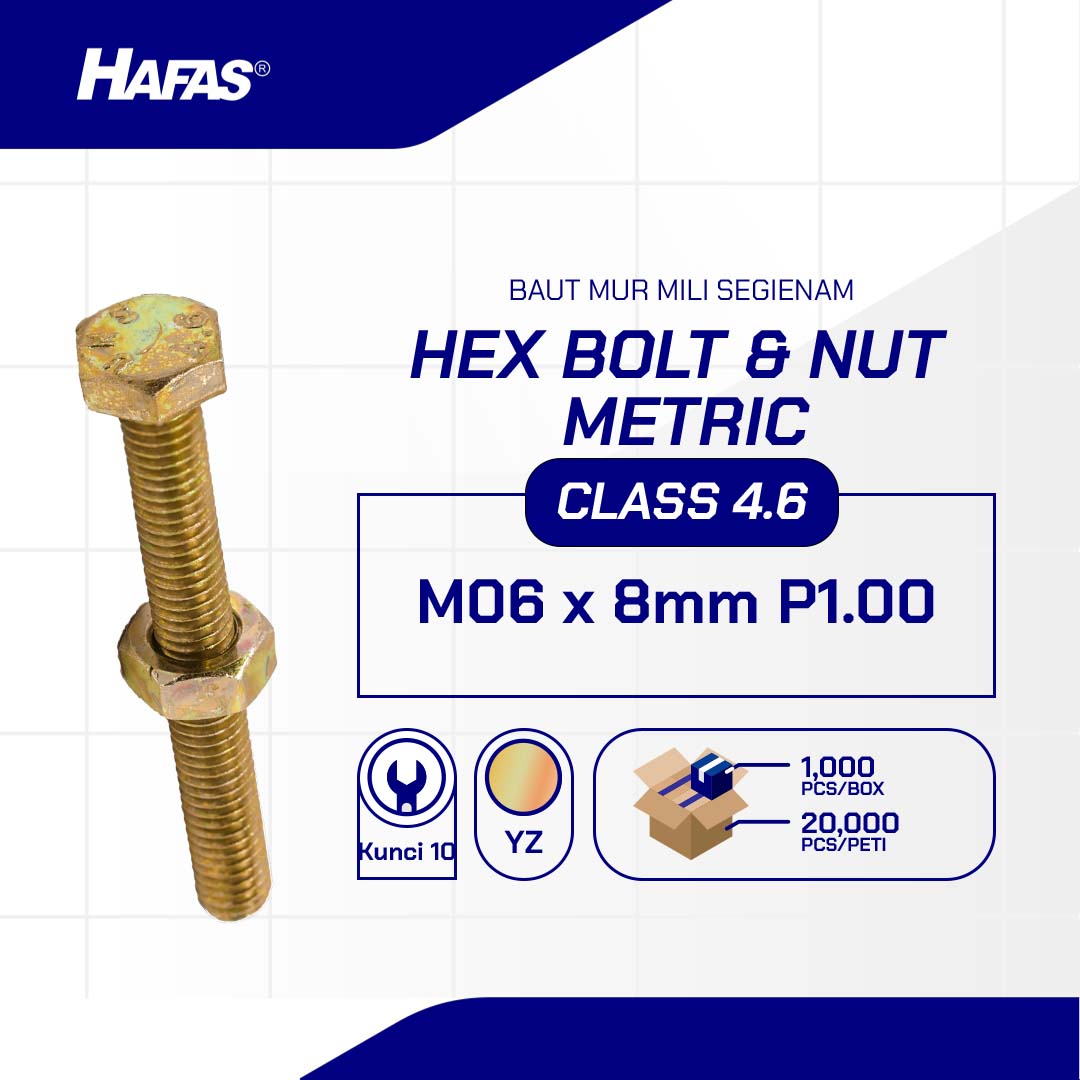 (BAUT MUR MILI SEGIENAM 4.6 DIN 933 KUNING M06 X 8 P1.00 )