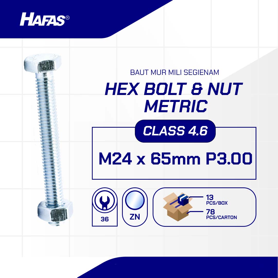 HEX BOLT AND NUT 4.6 METRIC DIN 933 PUTIH M24 X 65mm P3.00