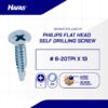 (PHILIPS FLAT HEAD DRILLING SCREW WHITE ZINC PLATED # 6-20TPI X 13)