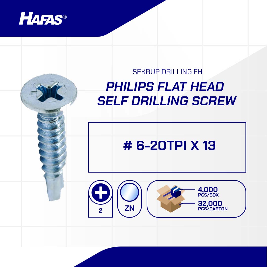 Ya, proses pesanan Tidak, kembali ke detail produk(PHILIPS FLAT HEAD DRILLING SCREW WHITE ZINC PLATED # 6-20TPI X 13)
