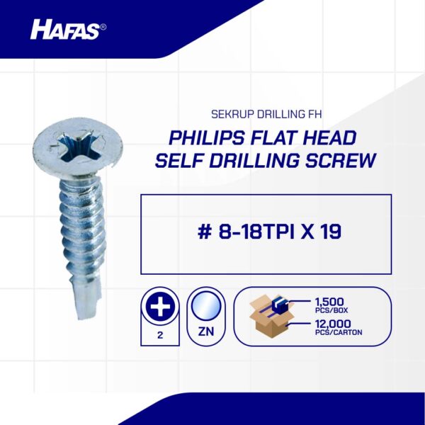Ya, proses pesanan Tidak, kembali ke detail produk(PHILIPS FLAT HEAD DRILLING SCREW WHITE ZINC PLATED # 8-18TPI X 19)