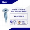 (PHILIPS FLAT HEAD DRILLING SCREW WHITE ZINC PLATED # 8-18TPI X 32)