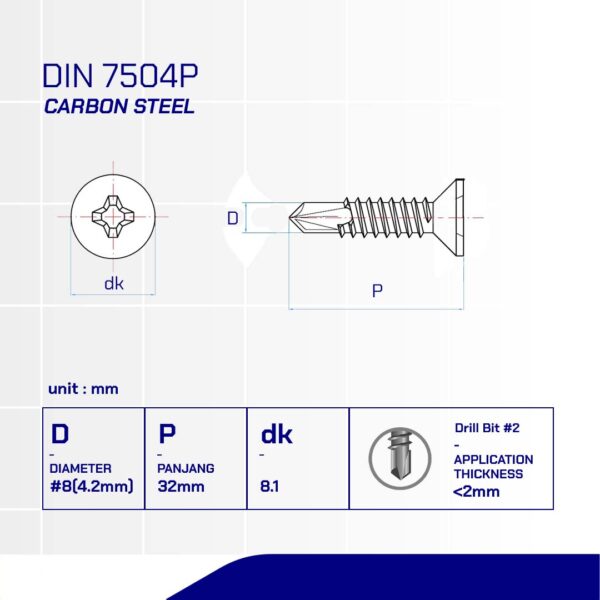 Ya, proses pesanan Tidak, kembali ke detail produk(PHILIPS FLAT HEAD DRILLING SCREW WHITE ZINC PLATED # 8-18TPI X 32)