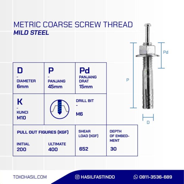 Ya, proses pesanan Tidak, kembali ke detail produkHAMMER DRIVE ANCHOR, HIT ANCHOR C-TYPE TRIVALENT CHROMATE M06 X 45mm