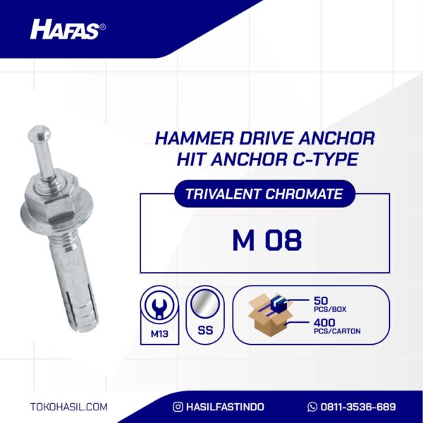 Ya, proses pesanan Tidak, kembali ke detail produkHAMMER DRIVE ANCHOR, HIT ANCHOR C-TYPE TRIVALENT CHROMATE M08 X 90mm