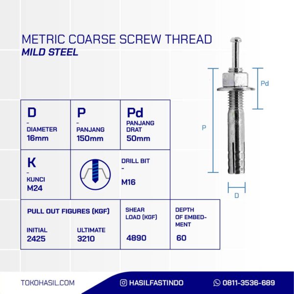 Ya, proses pesanan Tidak, kembali ke detail produkHAMMER DRIVE ANCHOR, HIT ANCHOR C-TYPE TRIVALENT CHROMATE M16 X 150mm