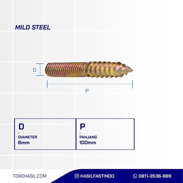 (HANGER BOLT / DOWEL SCREW UCP KUNING M6 X 100mm)