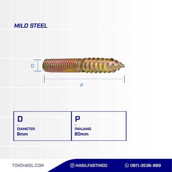 (HANGER BOLT / DOWEL SCREW UCP KUNING M6 X 80mm)