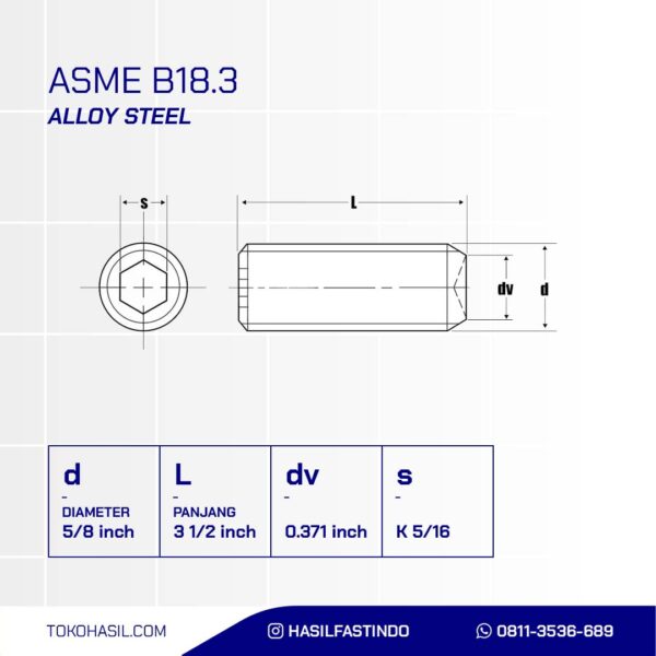 HEX SOCKET SET 12.9 5/8 X 3 1/2 11TPI BLACK OXIDE