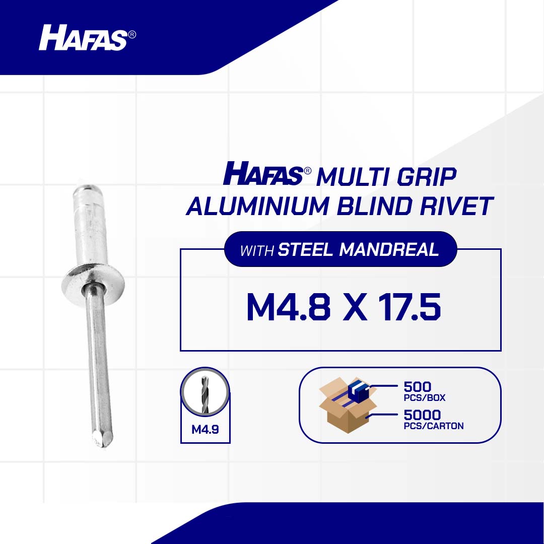 MULTI GRIP ALLUMINIUM BLIND RIVET WITH STEEL MANDREAL M4.8 x 17.5mm