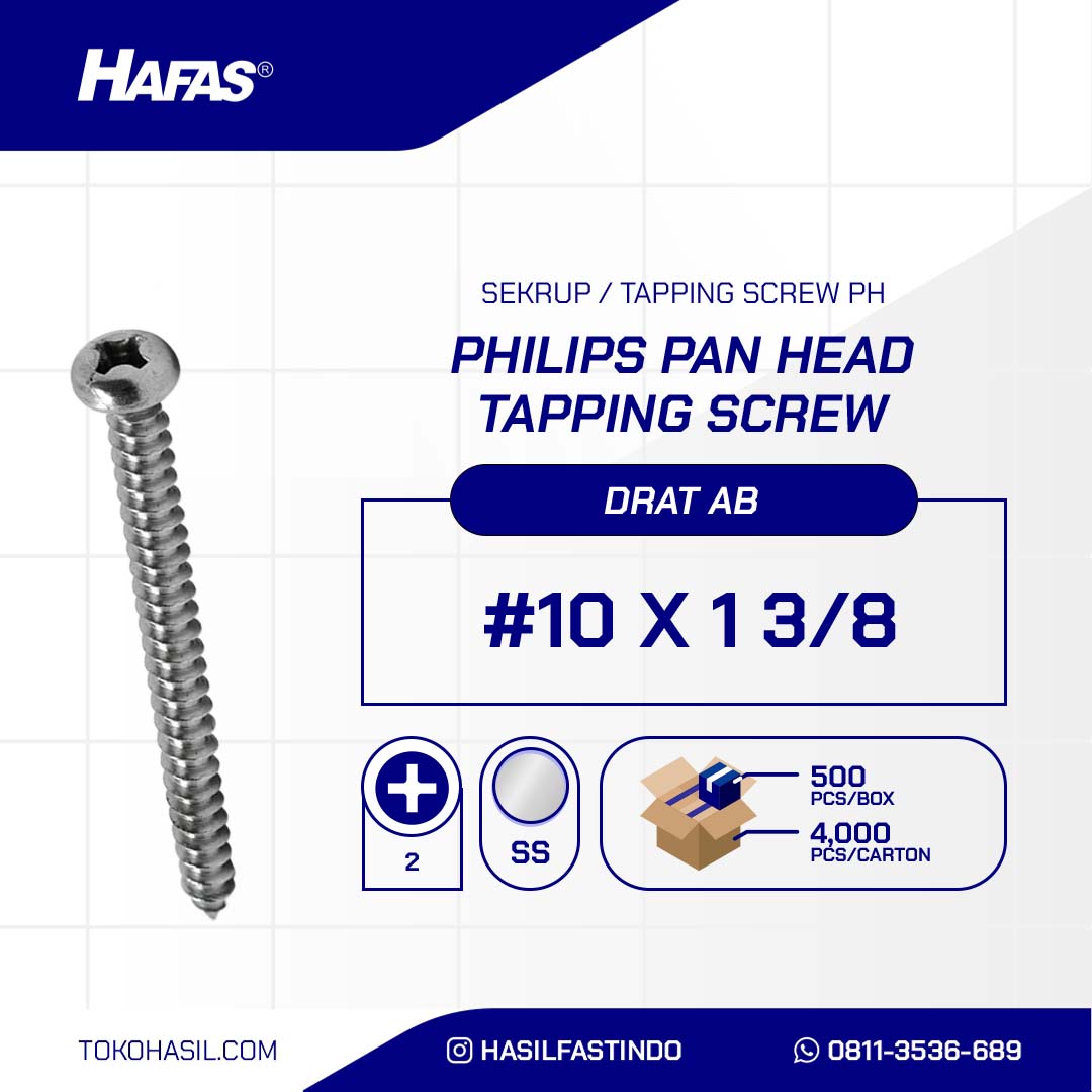 PHILIPS PAN HEAD TAPPING SCREW SUS 304 05 X 35 n(SEKRUP TAPPING PH+ SUS 304 05 X 35 )nnDiameter: M05nPanjang: 35mmnBahan: Besi Stainless 304nLapisan: Stainless SteelnObeng: 3nStandard: DIN 7981nBentuk Kepala: Kepala Pan
